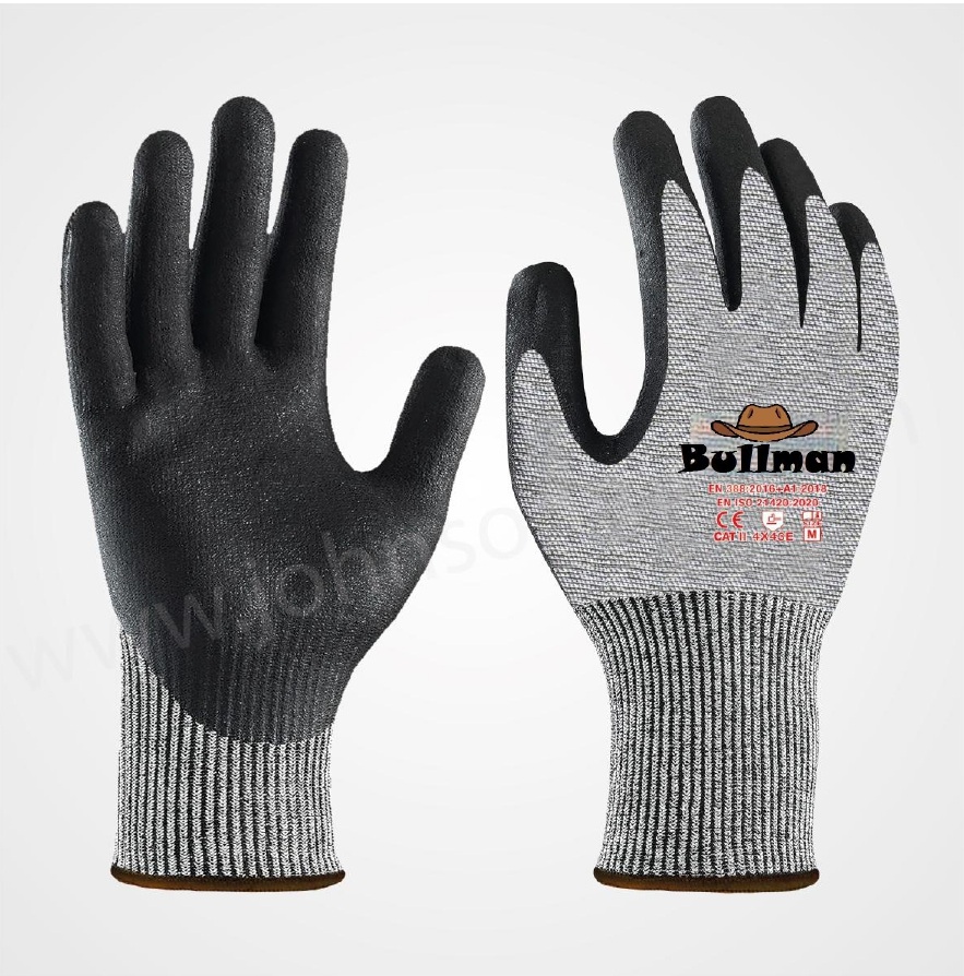 Cut Level 5 Resistance Nitrile Sandy Gloves Protection made of High Tenacity seamless knitted liner that provides long lasting protection against cut, tear and abrasion. Ergonomic design, with nitrile coating for excellent grip and tactile feel even in wet, dry or oily environments.